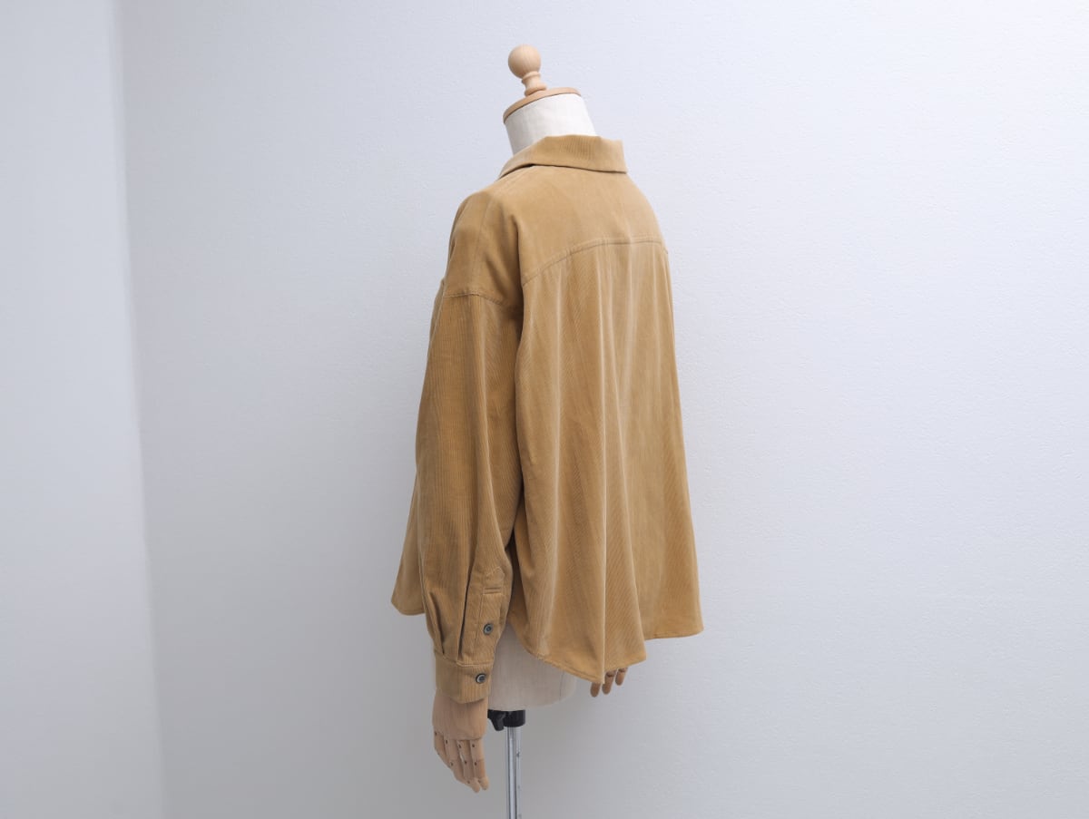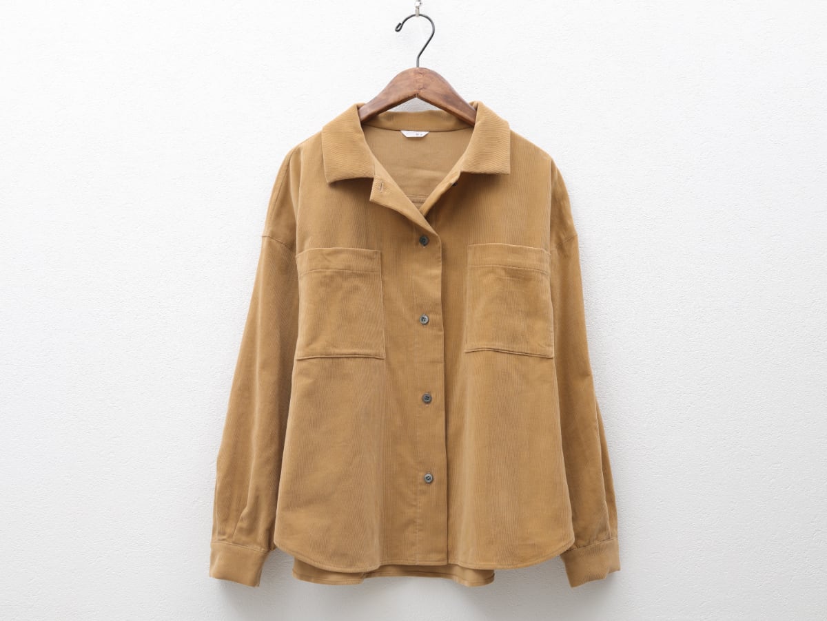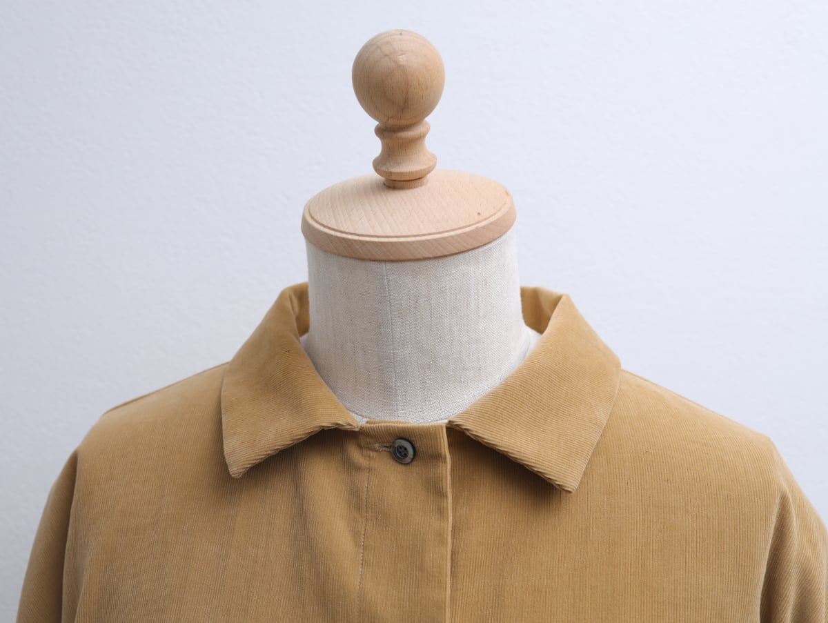 目をぎゅっと詰めて織ったコール天生地は、ふっくらやわらかい落ち感がありカジュアルながら端正なたたずまい。温かい雰囲気で人気のマスタードカラーは京都在住の染色家の手を借りて制作したオリジナルカラーです。ボタンを開ければ軽い羽織りものになるゆったりとした短め丈の新デザインは、ワイドパンツやスカートとの相性が良く「つい着ちゃう1枚」と重宝していただけそうです。