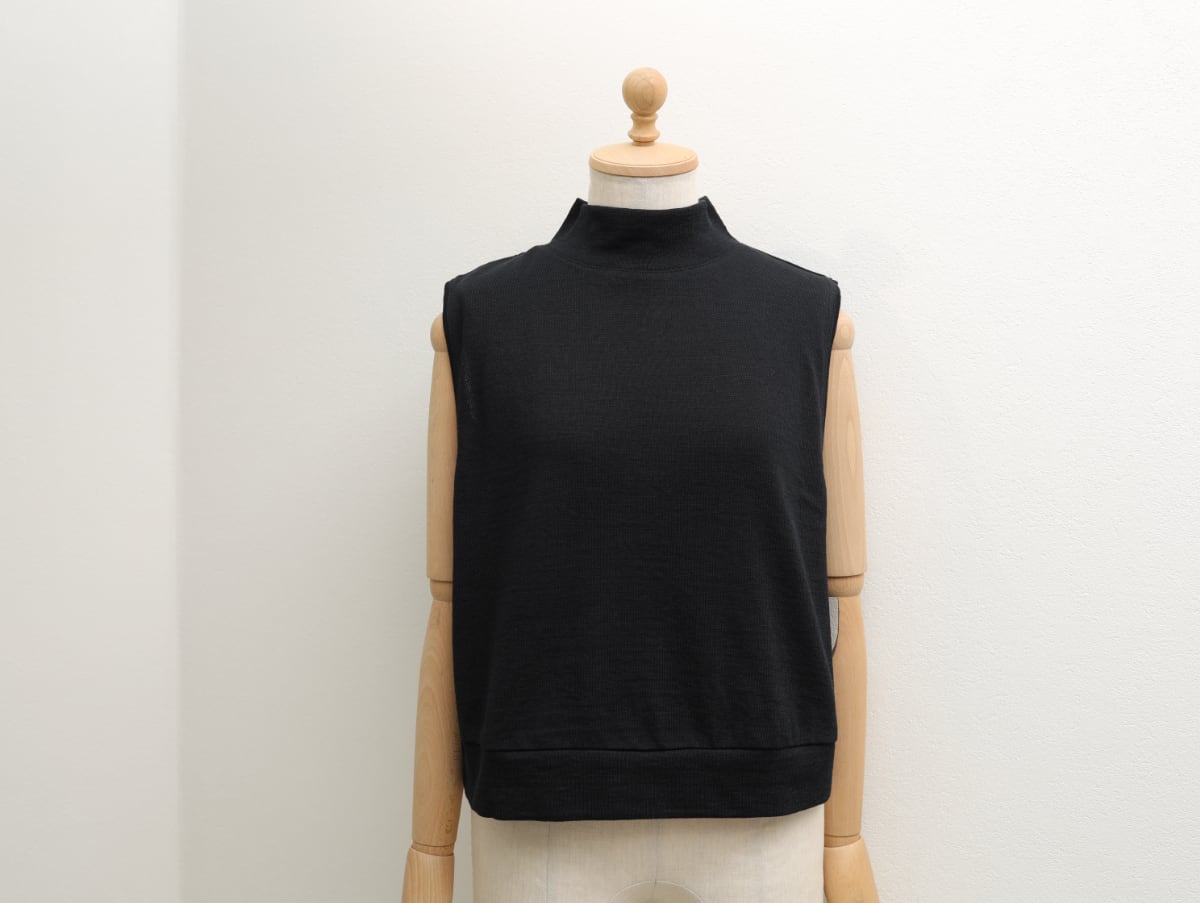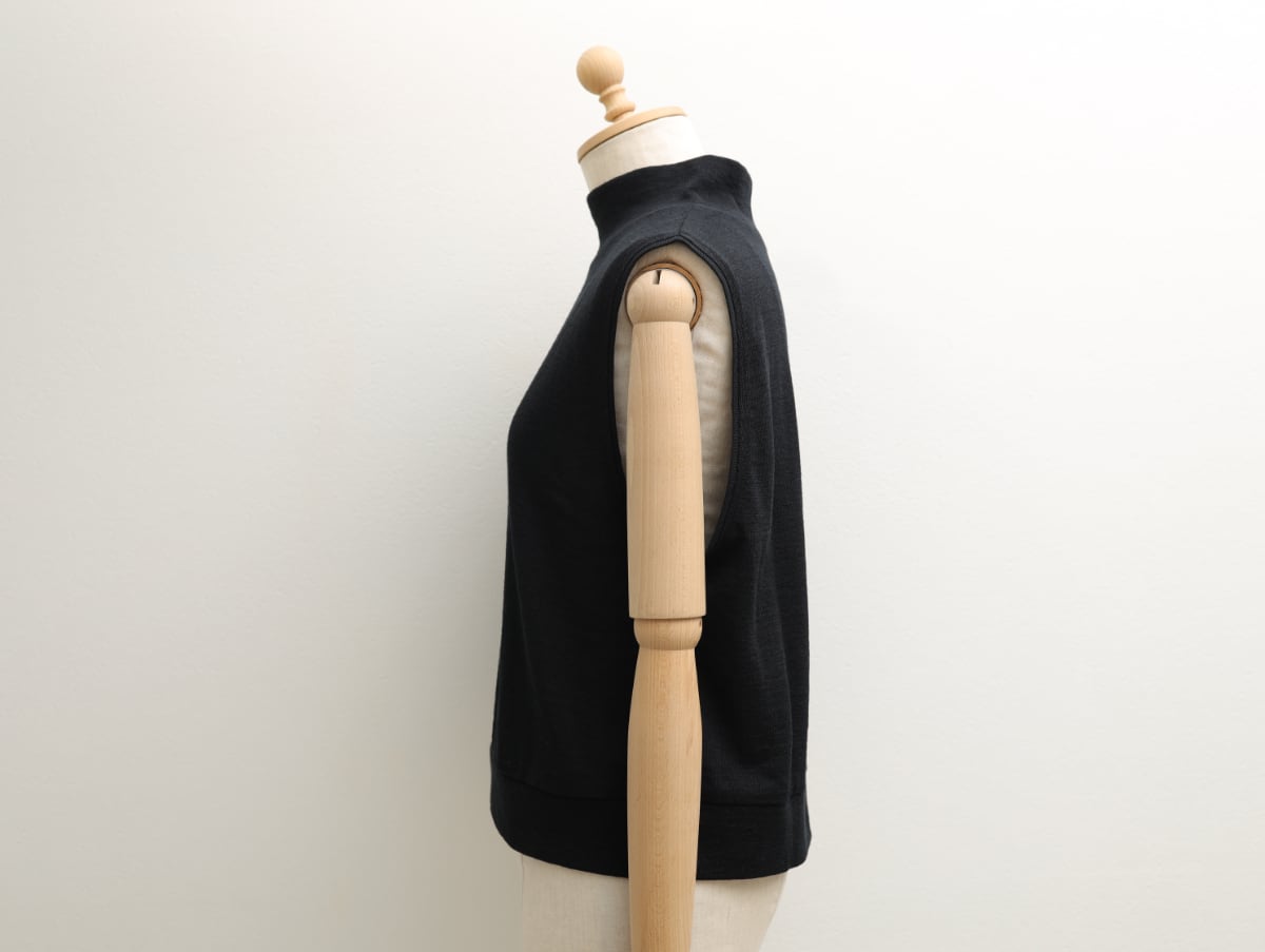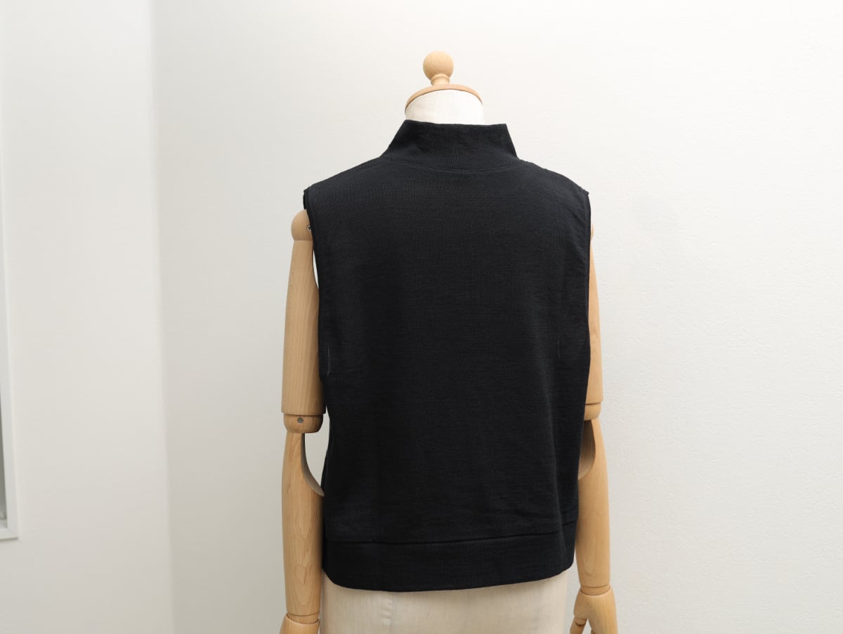 綿100%だけど、麻のようなシャリ感のある糸<擬麻(ギマ)コットン>の編地で仕立てたベストです。気になる胸をすっぽり覆いつつ、すっきり美しく見せる「日々」のパターンで安心の着心地。秋のはじめはインナーまたは袖なしトップスとして、また涼しくなってからはベストとして重ね着もお楽しみいただけます。