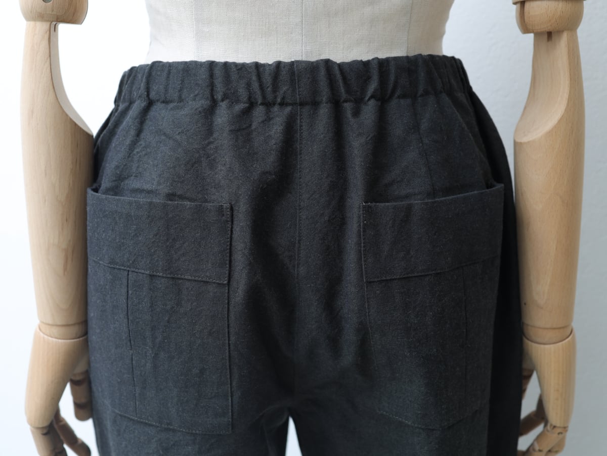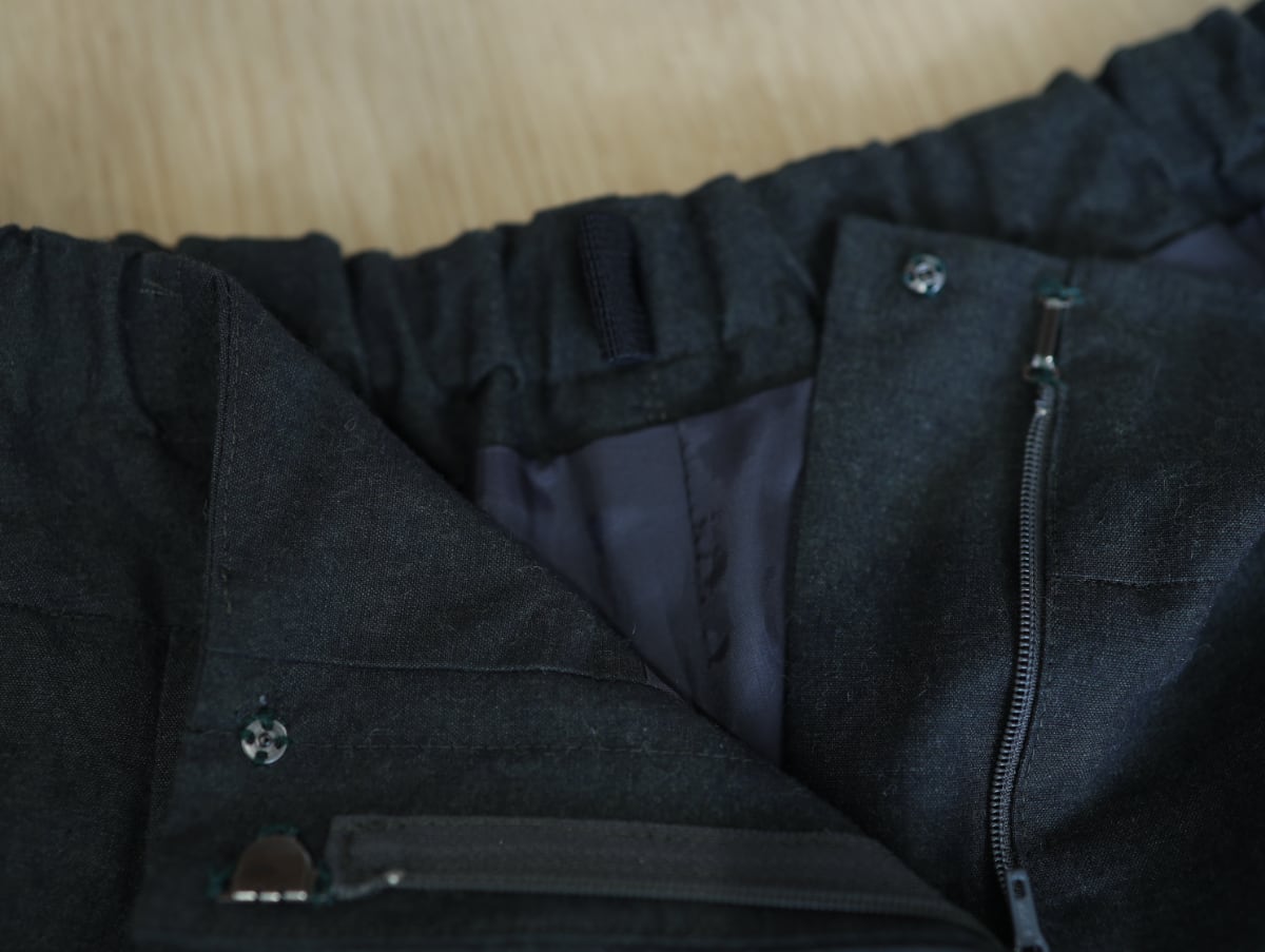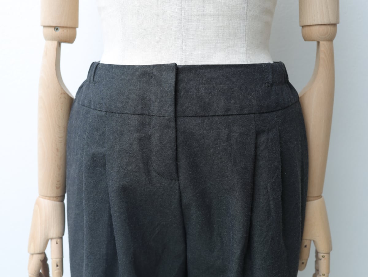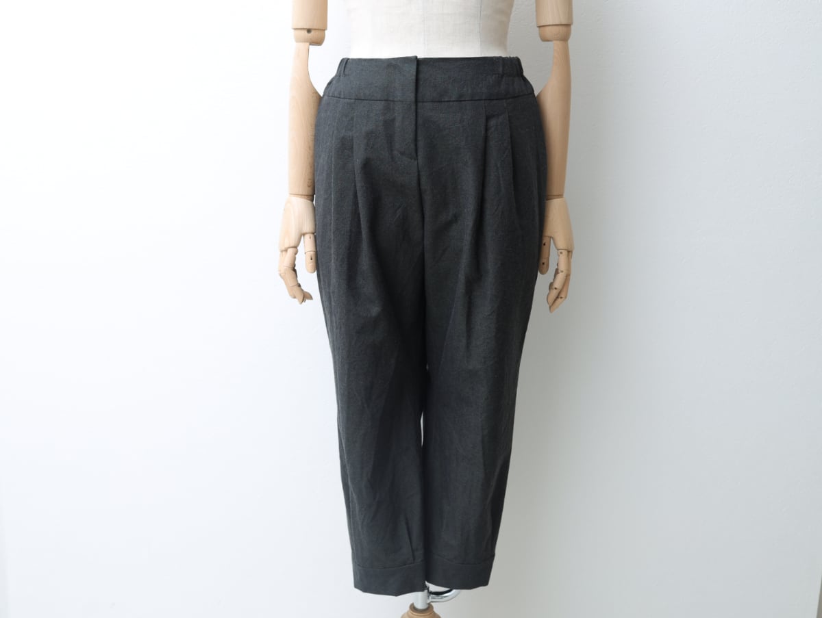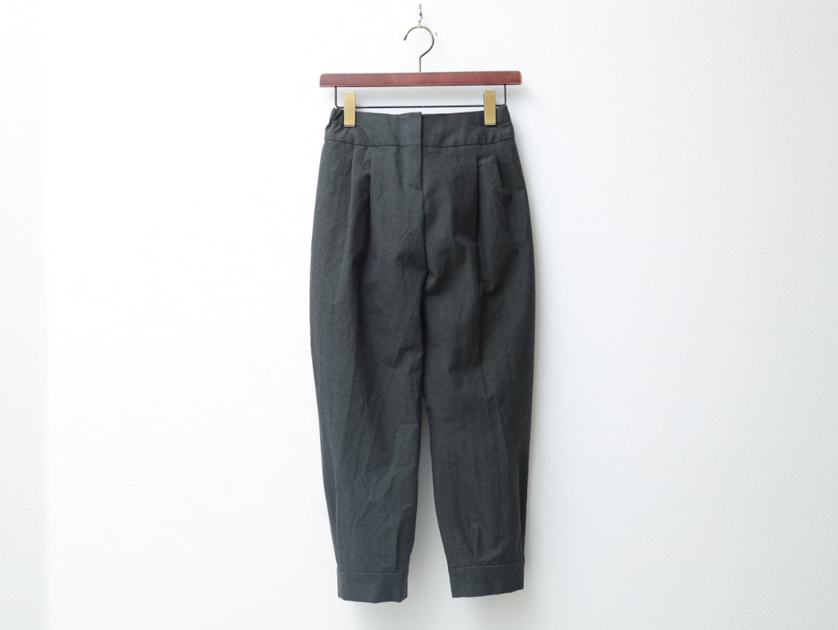 『日々』のロングセラーの綿ウールバフクロス。きっちり打ち込んだ高密度の生地は履くほどにこなれ感が増し、裾に配したタックと曲線を描く脚のラインに遊び心をトッピングしたシルエットで、想像を超えるエレガントな着心地をおとどけします。