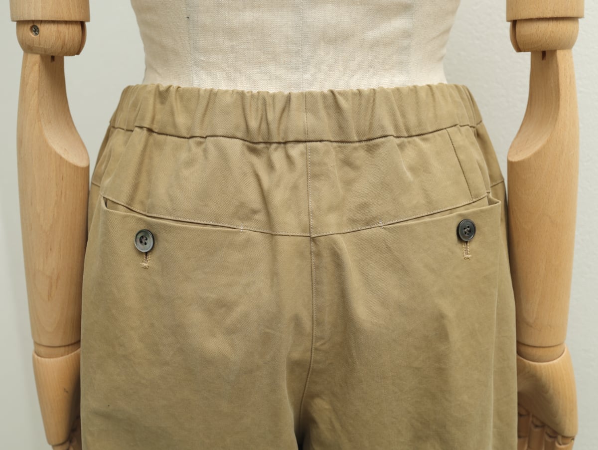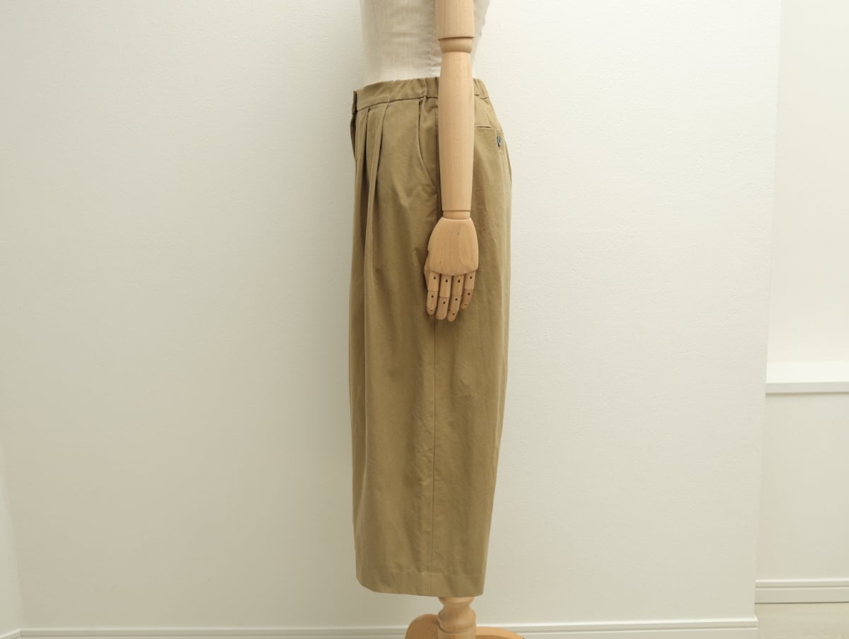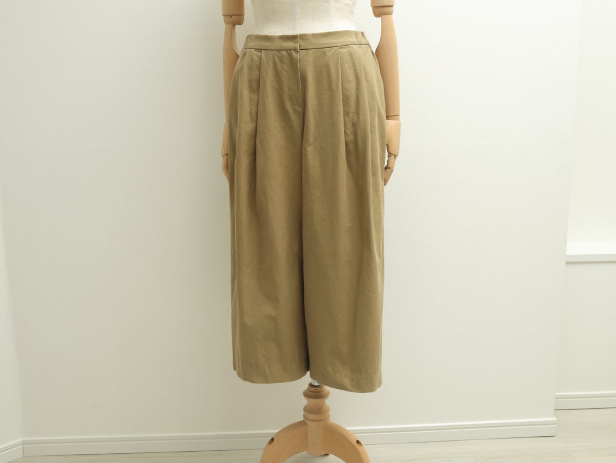 コットン綾織りニドム加工のクロップドタックパンツ c/#ウォッシュカーキ