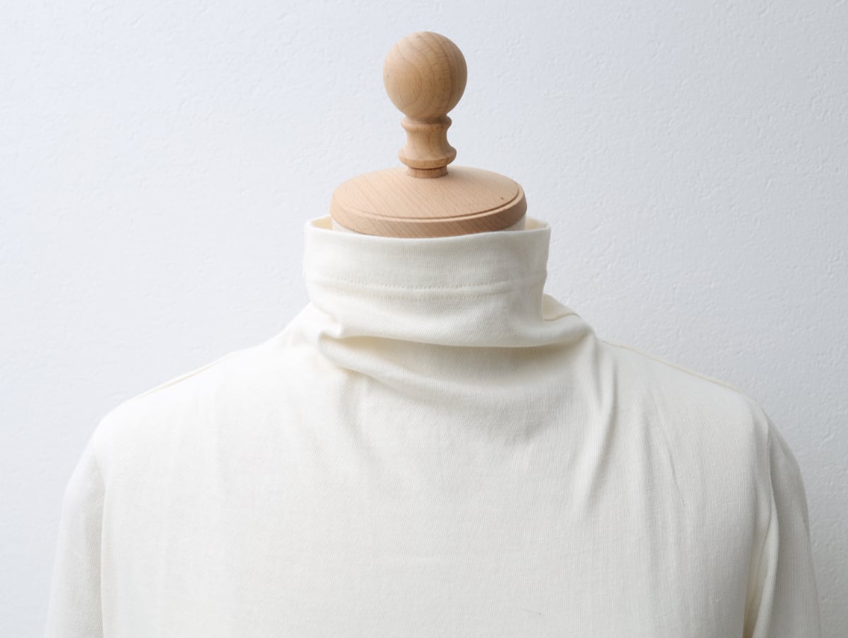 やわらか吊編み天竺のタートルネックプルオーバー c/#アイボリー