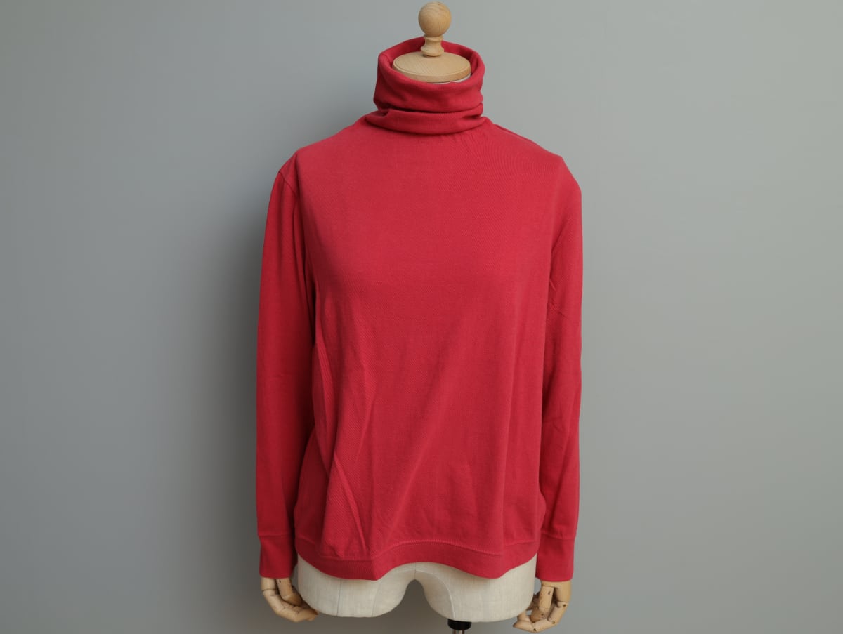 やわらか吊編み天竺のタートルネックプルオーバー c/#赤