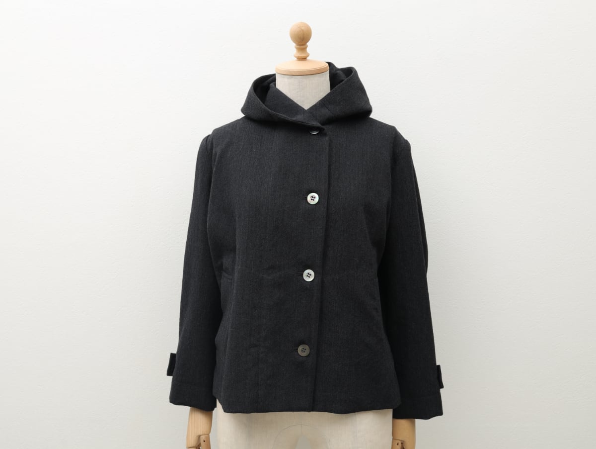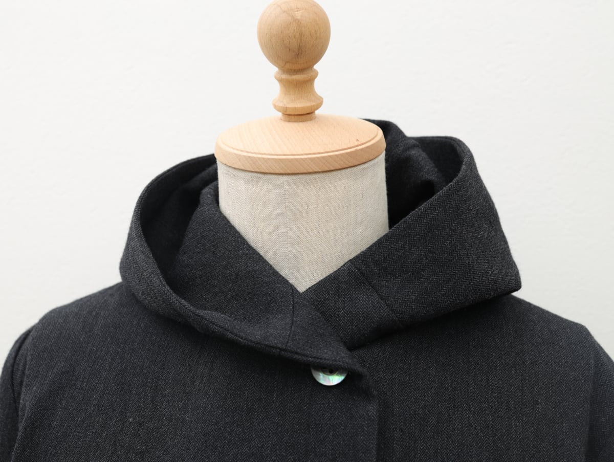 ウールトップヘリンボンのフード付きコート COL/ダークグレー