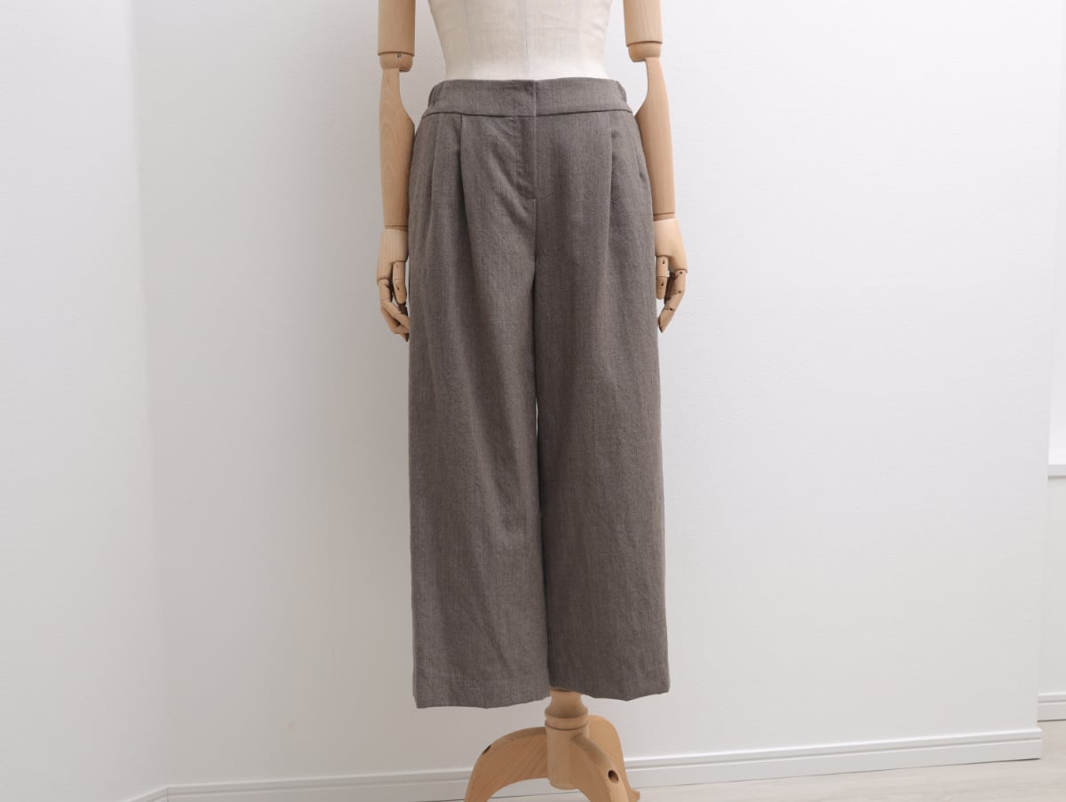 ウールトップヘリンボンのワイドパンツ c/#茶系