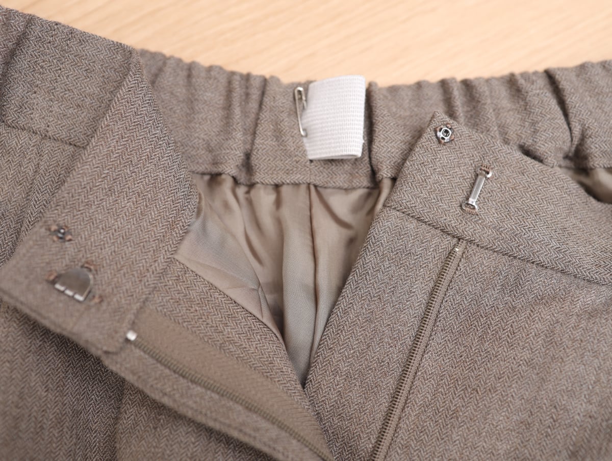 ウールトップヘリンボンのクロップドタックパンツ c/#茶系