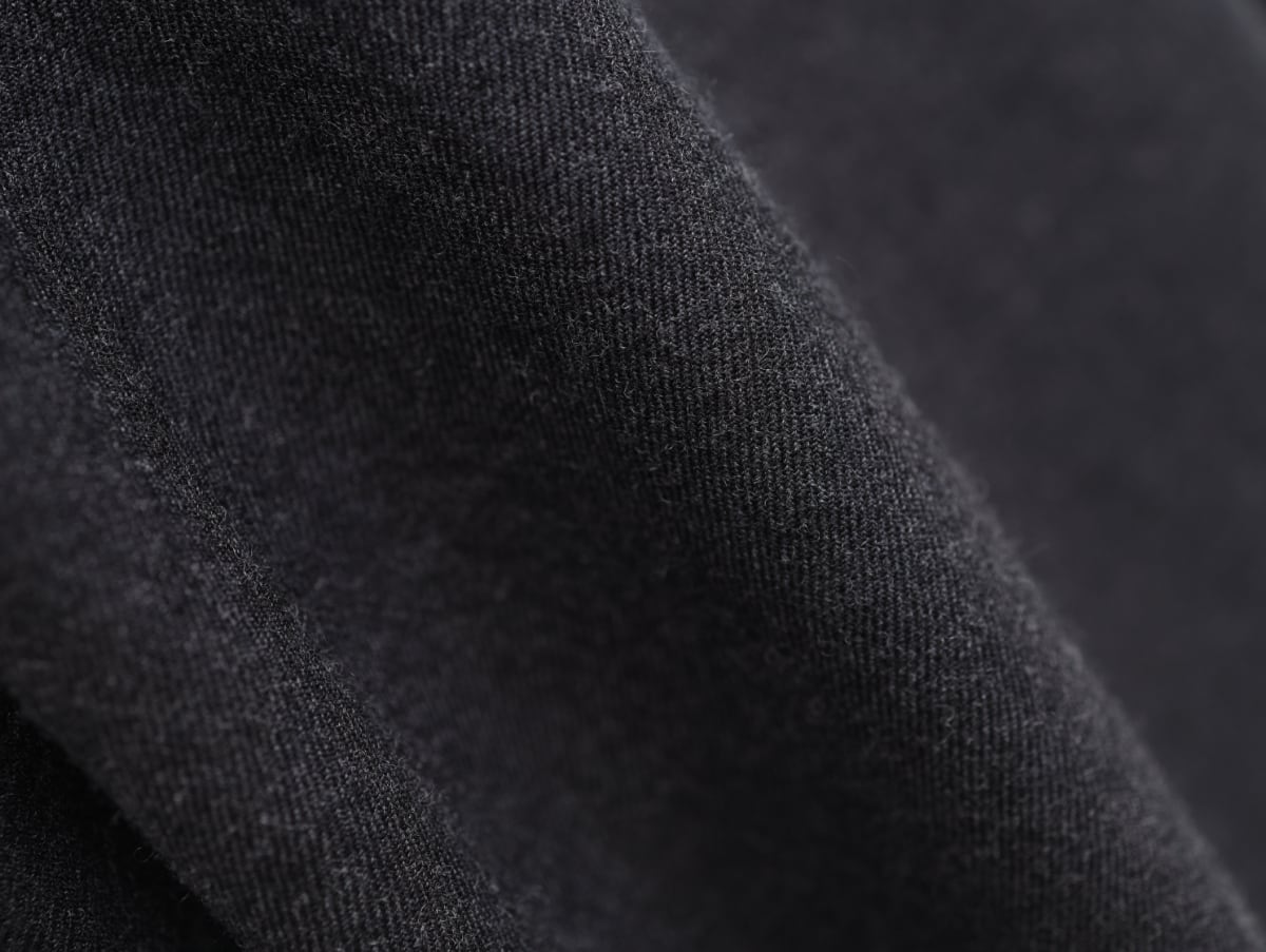 ウールの産地の愛知県一宮で織った生地は、落ち感をリクエストしてアップデートした綾織りです。前面に取った2本の深いタックから生じるふっくらしなやかな風合いは、シックなエレガンスを感じていただけるのではないかと思っています。