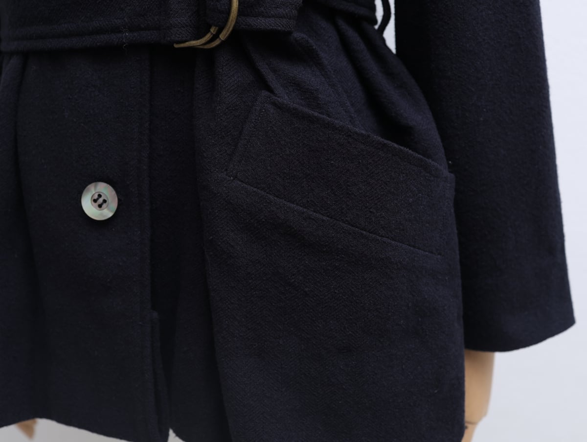 シルク混ヘリンボンの衿付きコート COL/ネイビー