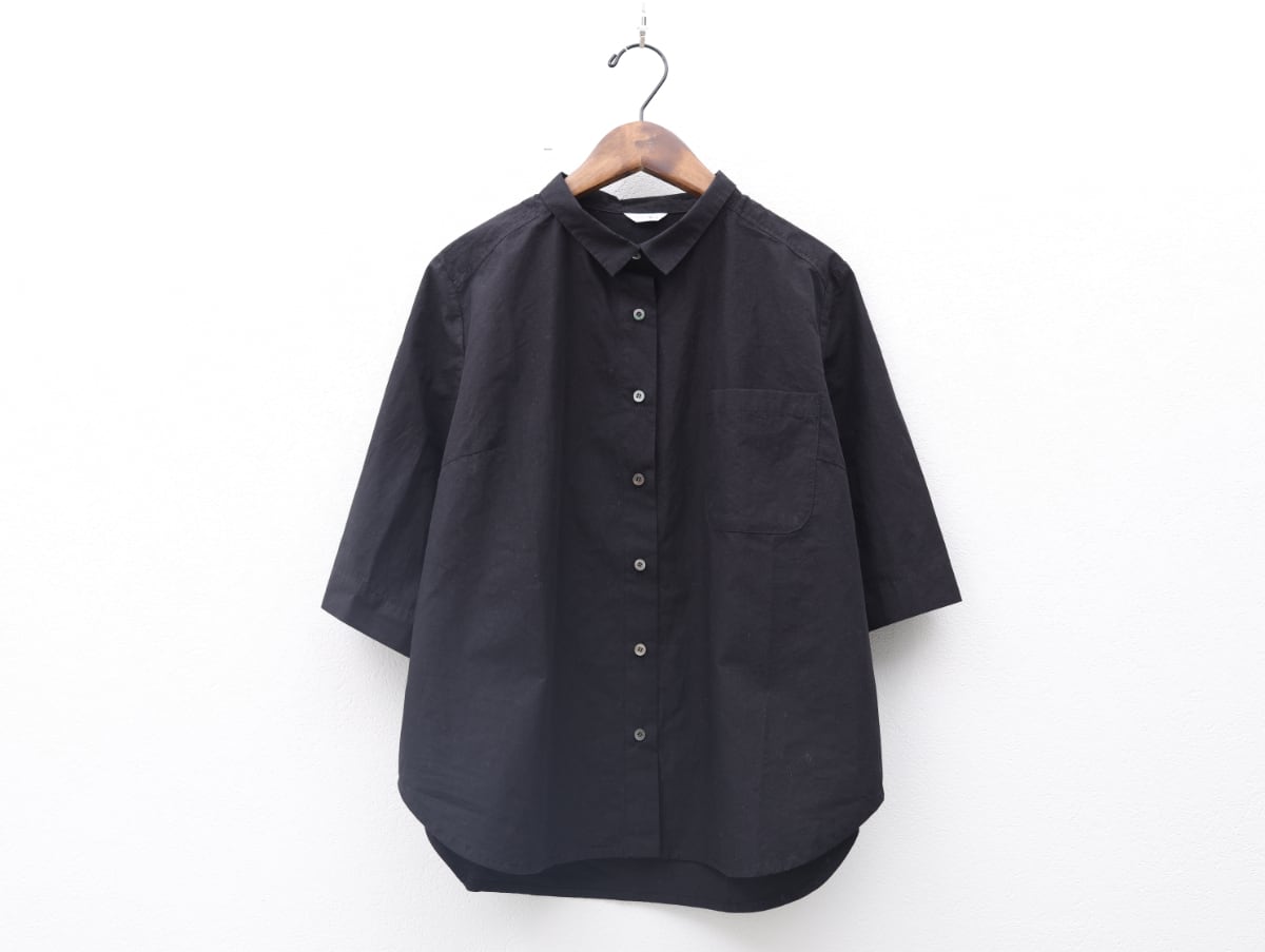 タイプライタークロス角衿半袖シャツ COL/黒