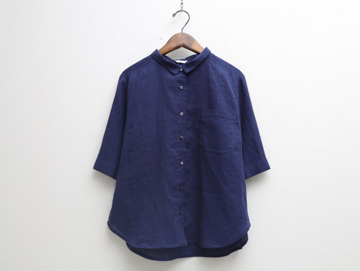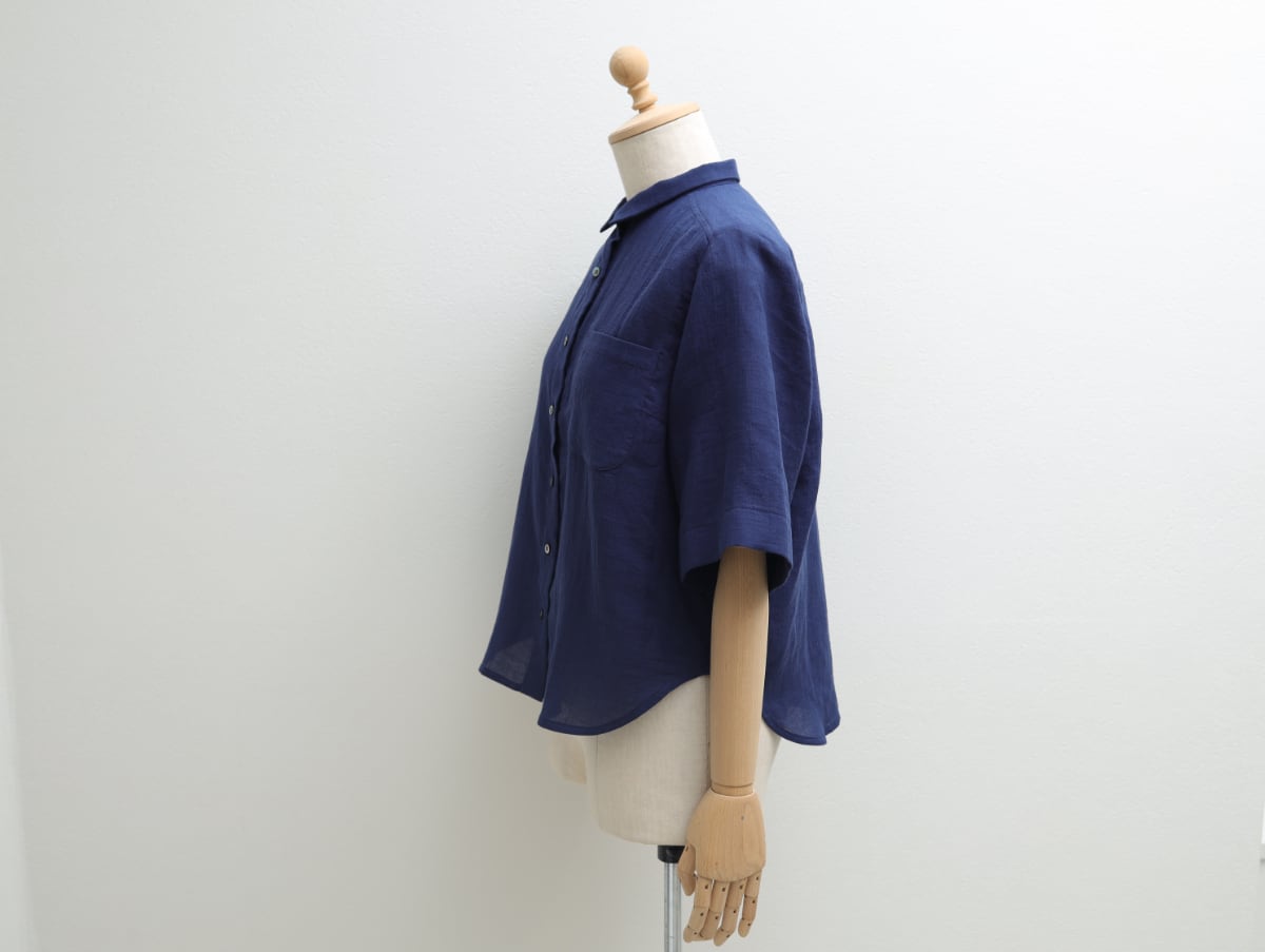 80二重ガーゼの五分袖ショート丈シャツ c/#ブルー
