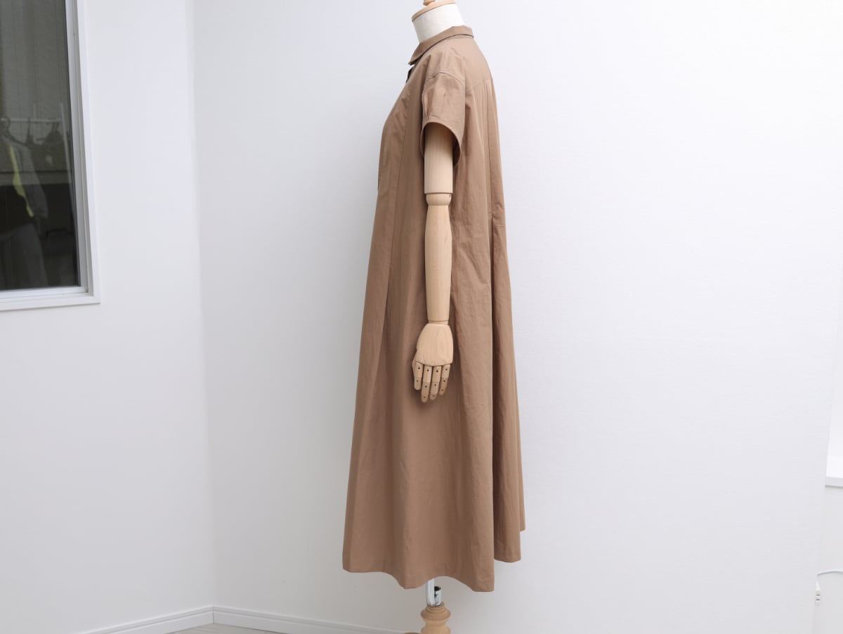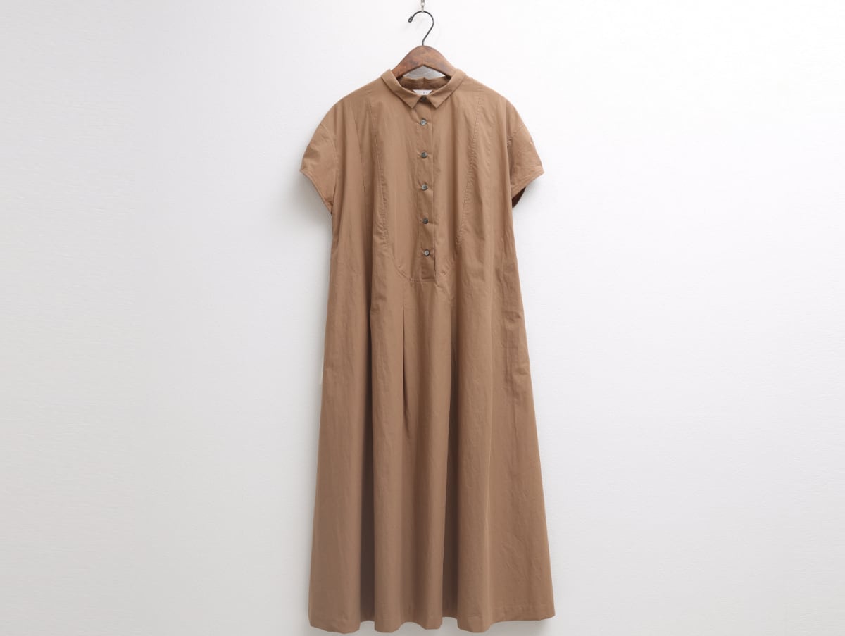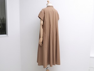 サウンドクロスのフレンチ袖ワンピース c/#キャメルベージュ