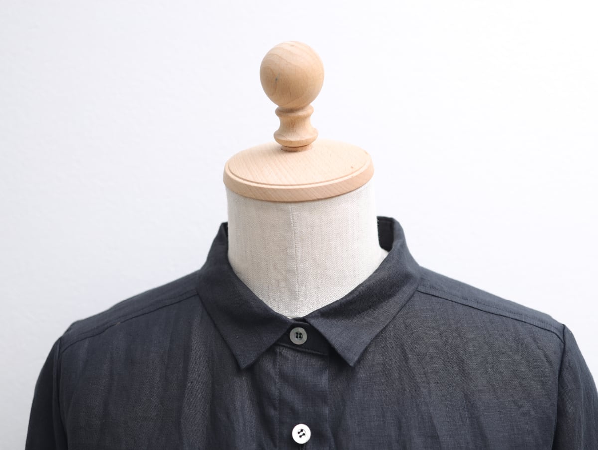 ヘンプローン五分袖ミドル丈シャツ c/#黒