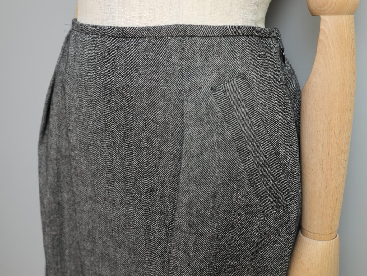 リネンウールヘリンボンのタックスカート COL/白×黒
