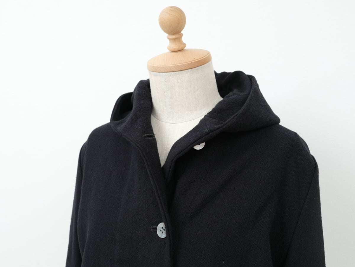 シルク混ヘリンボンのフード付きコート COL/ネイビー
