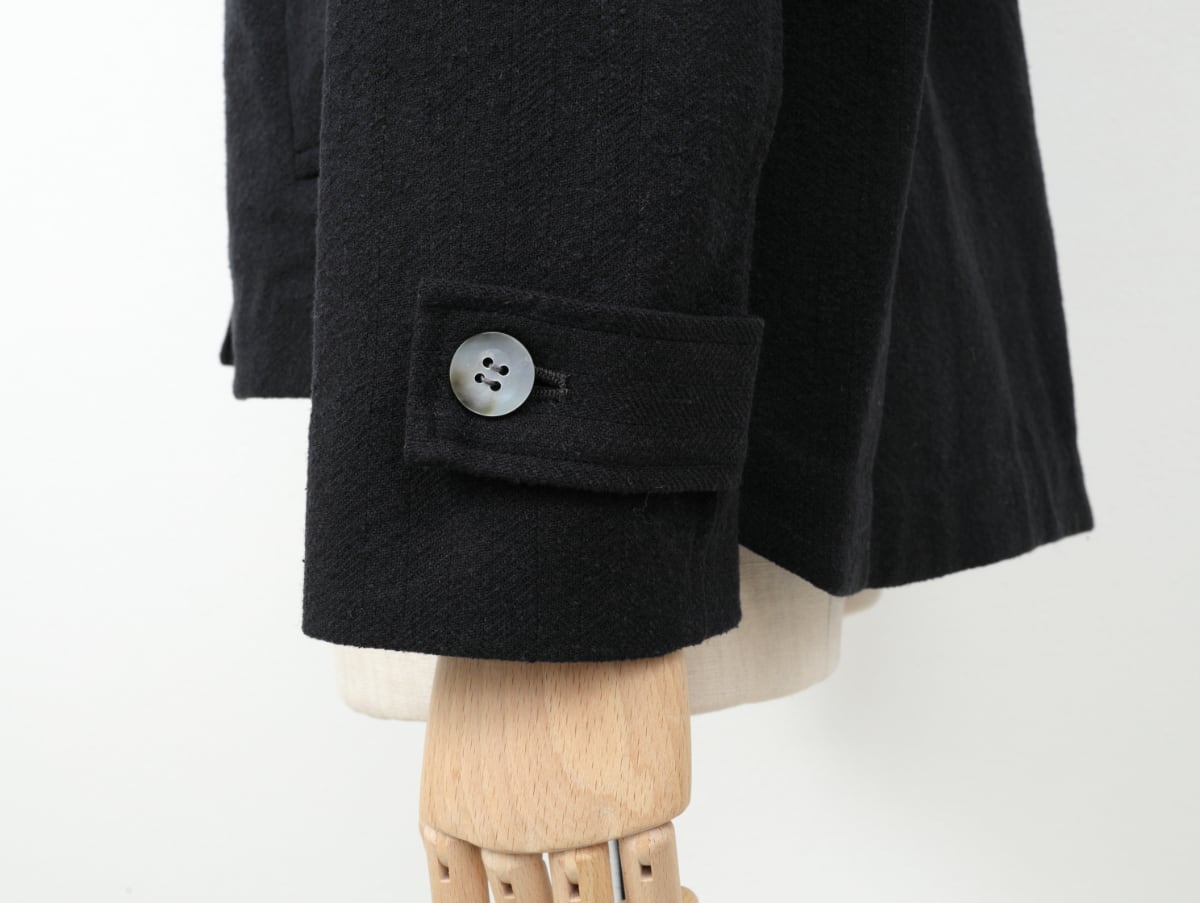 蚕を紡績する際に出る繊維”ローシルク”にウールと木綿を合わせた織物は、きっちり打ちこんだへリンボン生地。ふっくらとして温かく、ほどよいナチュラル感に仕上がりました。